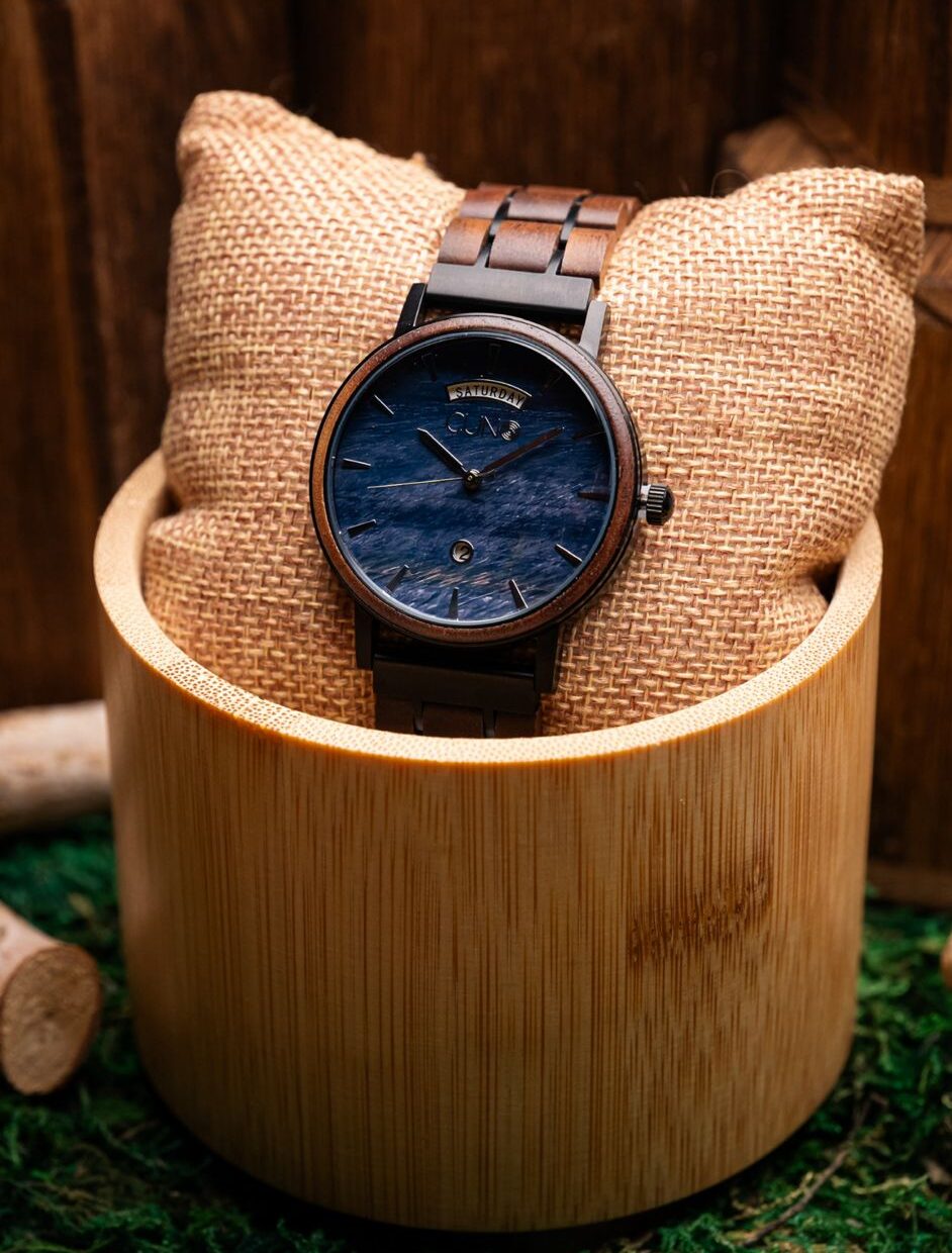 Die einzigartigen Maserungen von Holz und die faszinierenden Strukturen von Stein machen jedes unserer Uhren- und Schmuckstücke zu einem echten Unikat, das die Schönheit der Natur stilvoll einfängt.