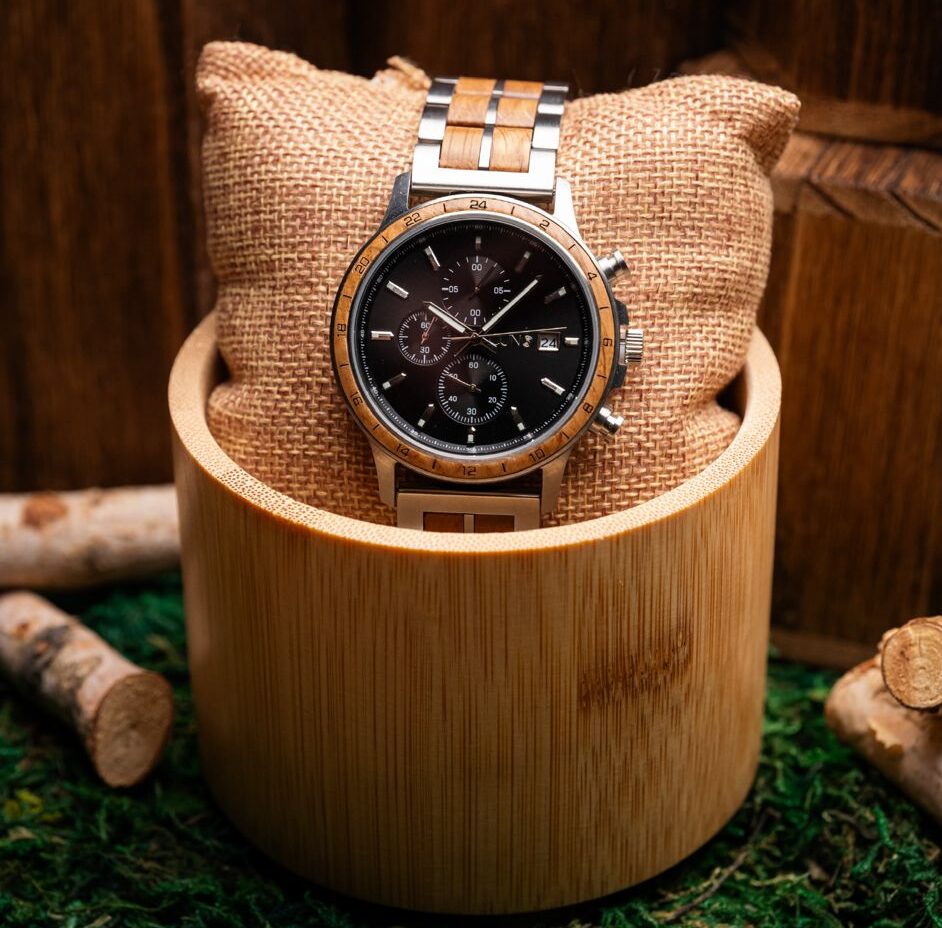 Die einzigartigen Maserungen von Holz und die faszinierenden Strukturen von Stein machen jedes unserer Uhren- und Schmuckstücke zu einem echten Unikat, das die Schönheit der Natur stilvoll einfängt.